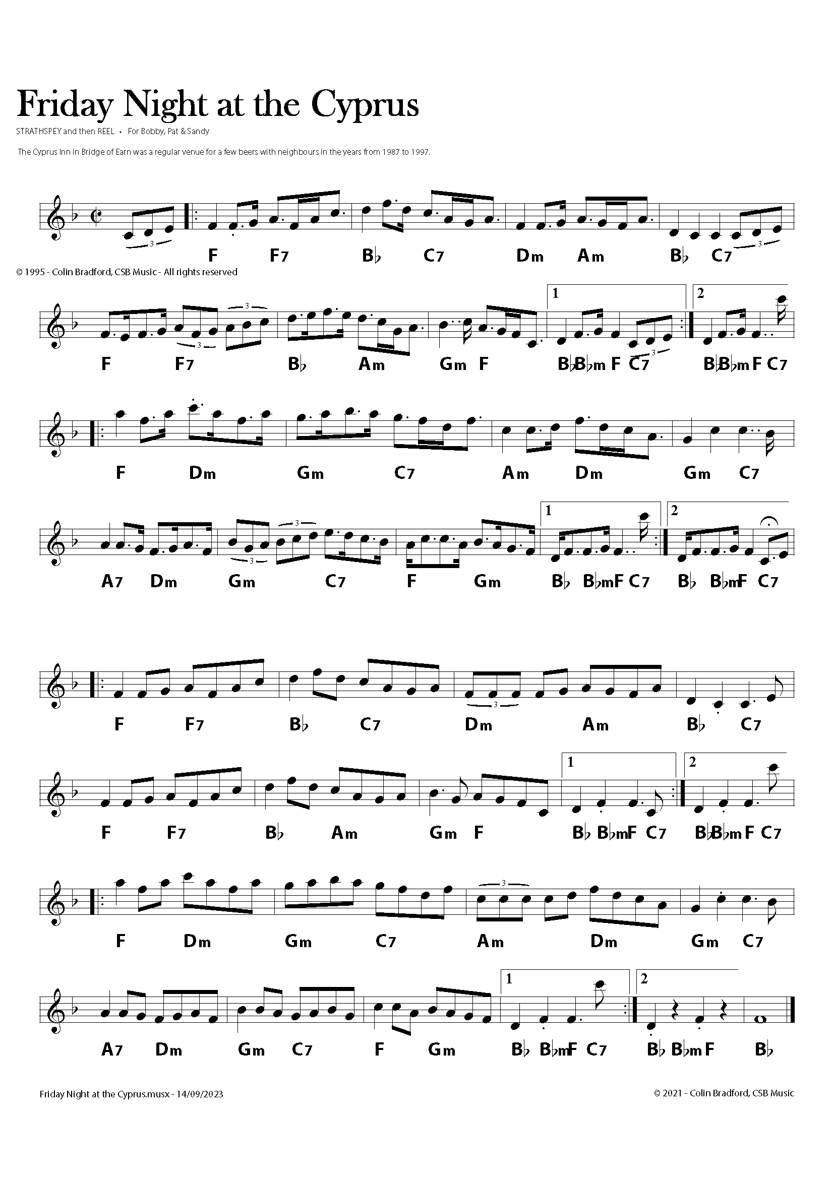 | Friday Night at the Cyprus | c1995 | The original key was F but the key of E is good fun and keeps the fiddle in 1st position. | ||||